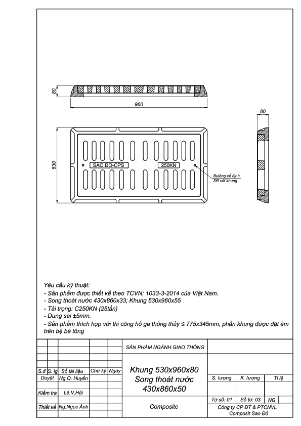 Bản vẽ Song thoát nước Composite KT: 430x860mm khung 530x960mm