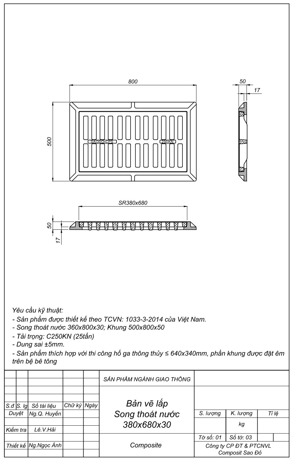 Bộ song chắn rác Composite KT: 380x680mm - khung 500x800mm được sản xuất tại công ty Composit Sao Đỏ áp dụng công nghệ hiện đại vào sản xuất tối đa chi phí giá thành.