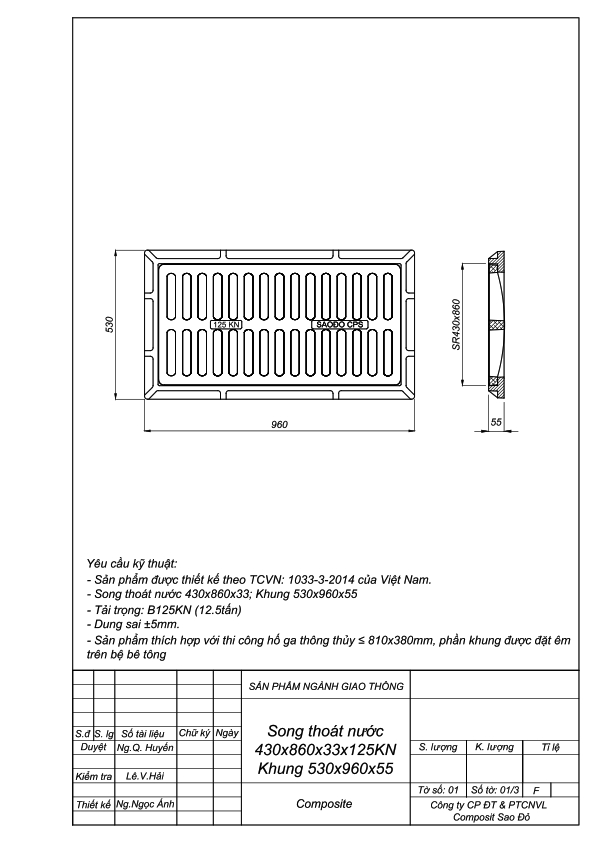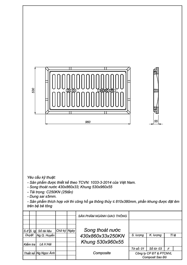 Bản vẽ Song chắn rác Composite KT: 430x860mm khung 530x960mm